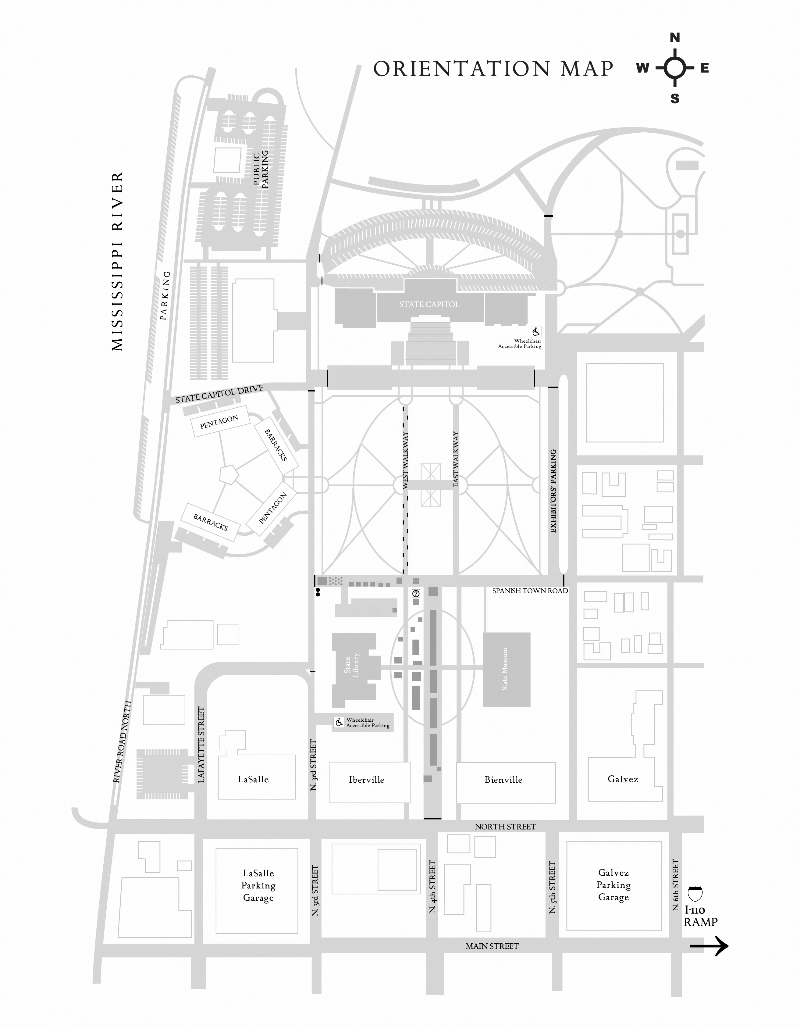 Free wheelchair accessible parking is available in the south parking lot of the State Library (enter from N. 3rd Street) and in designated spaces at the southeast corner of the Capitol.