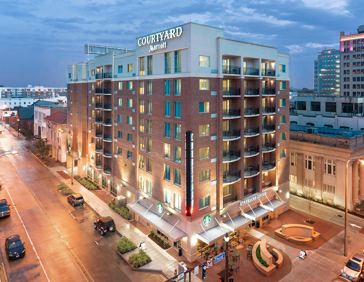 Located at the iconic corner of Florida and Third Street, the Courtyard by Marriott Baton Rouge Downtown is in the epicenter of Downtown Baton Rouge. Surrounded by restaurants and attractions, you can visit the Louisiana Arts Museum, Capital Park Museum, Old State Capital, Shaw Center for the Arts and Science and the LSU Museum of the Art. Following your many adventures, unwind in the Bistro with a local craft beer or fresh cocktail while enjoying our 9x9 video wall. We surround you with comfort and convenience thanks to our complimentary WiFi and plush bedding. Enjoy flexibility in our expanded 24-hour fitness center. Do not forget about the full service Starbucks adjacent to the lobby, to visit and share your favorite beverage with a friend.